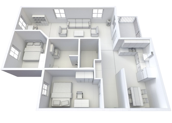 Трехкомнатная квартира с кухней-гостиной-2 спальными